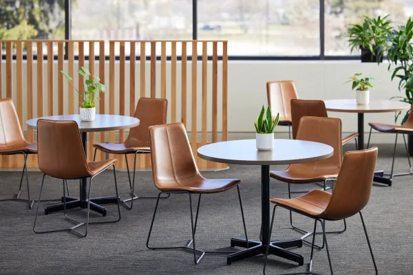Cafe spaces accommodate both meal and break times as well as informal meetings over coffee and snacks. Primary to this application is furniture that offers a simple aesthetic and is easy to clean and rearrange.
